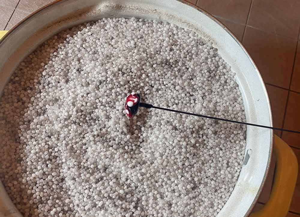 Nachdem die Glasperle "gedreht" wurde, muss diese ganz langsam abgekühlt werden damit die Spannungen im Glas die Perle nicht zum Platzen bringen. Kleine Perlen können dafür in ein "Abkühlgranulat" gelegt werde. Nach ca 1-2 Stunden kann die Perle entnommen werden.